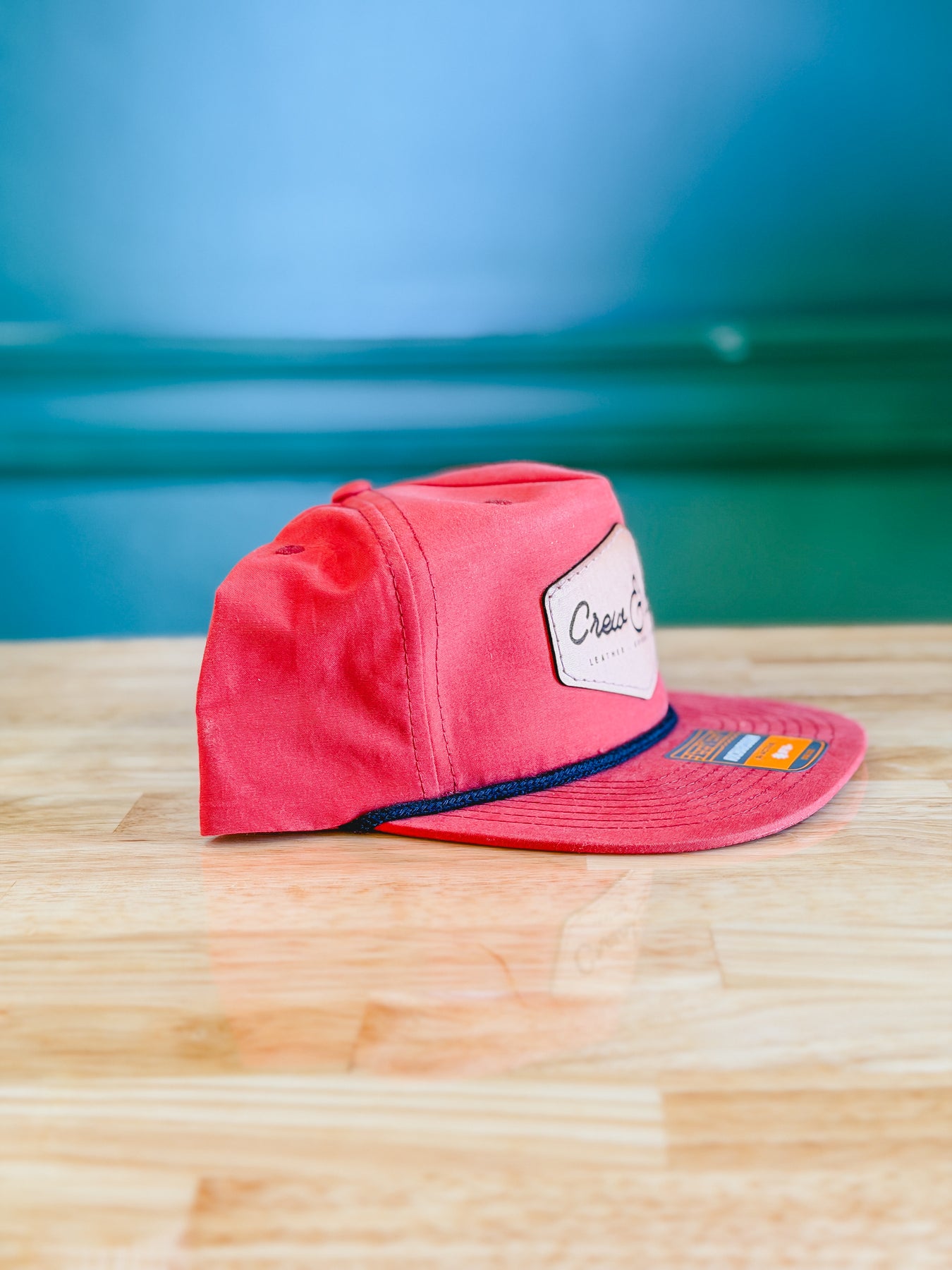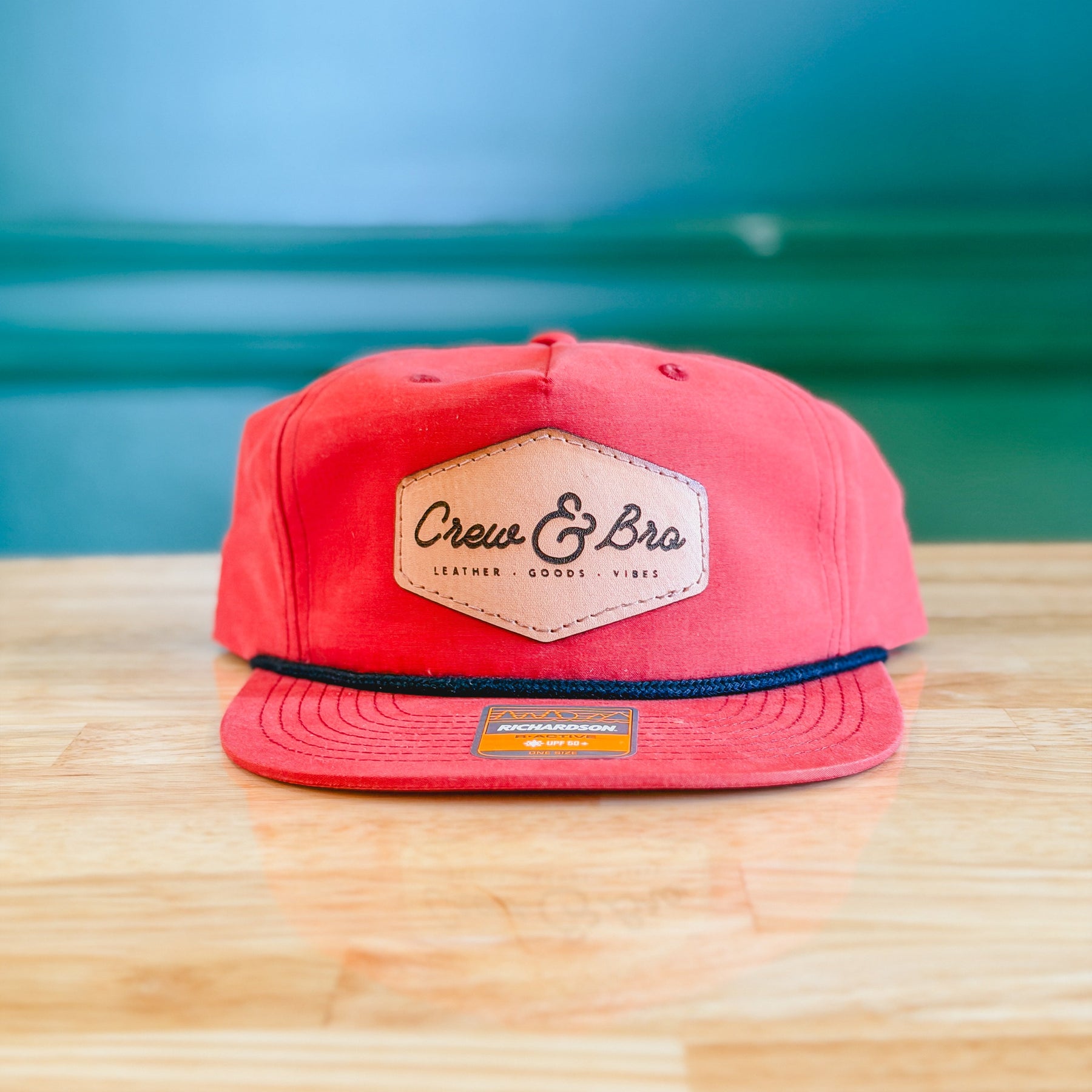 ![Crew & Bro Leather Patch Hat • Red with Black Rope]()