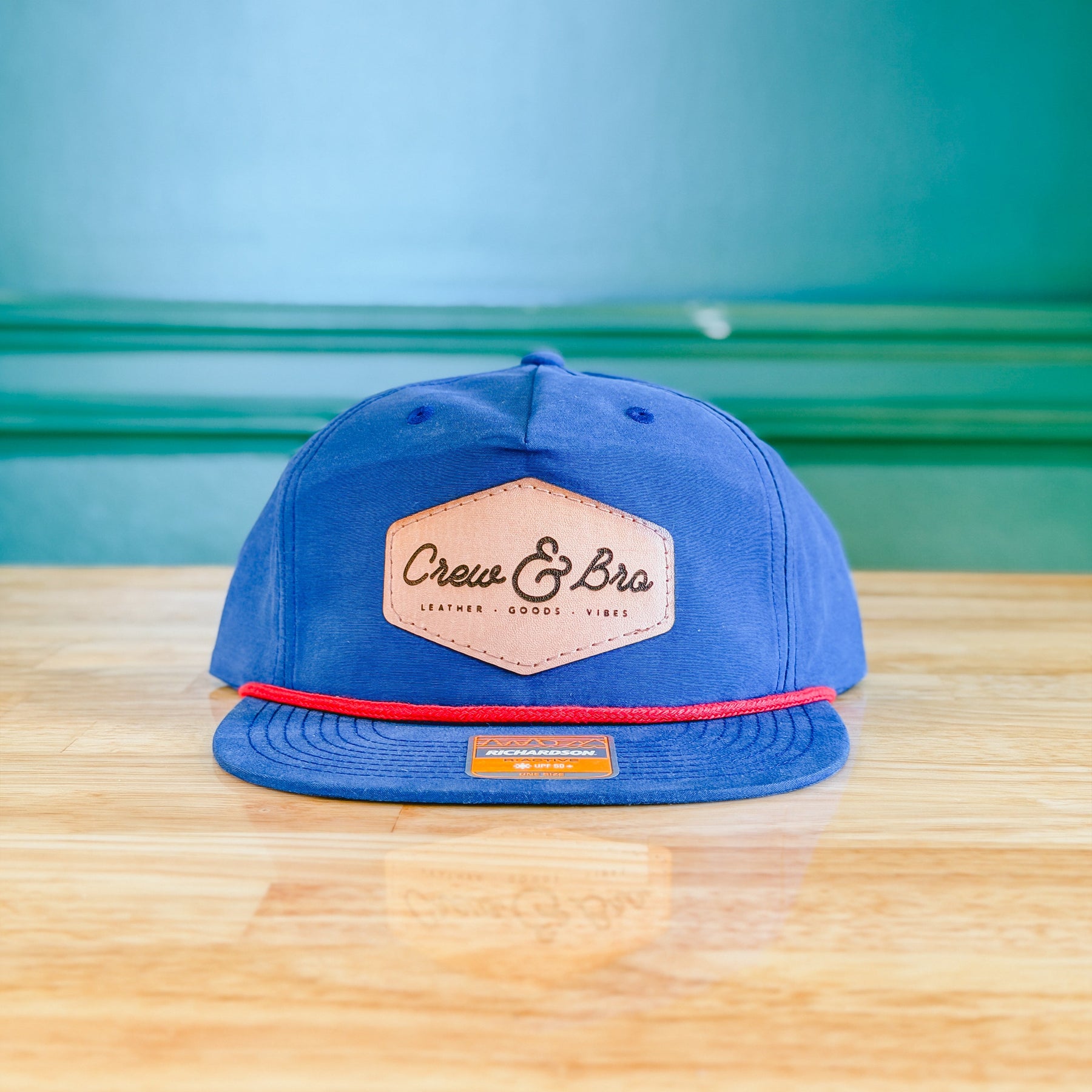![Crew & Bro Leather Patch Hat • Navy with Red Rope]()